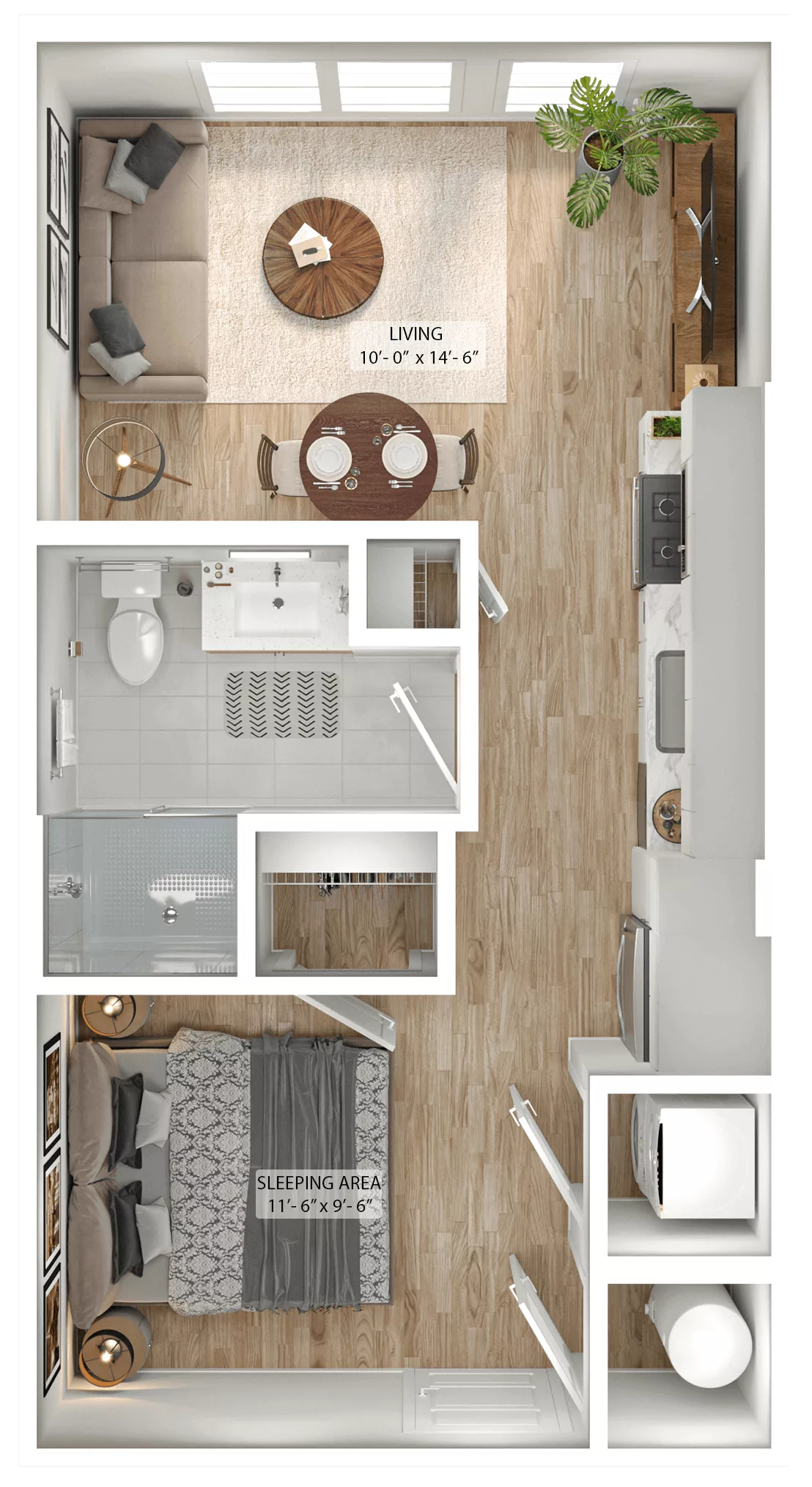 Modern studio, one-, and two-bedroom residences available.